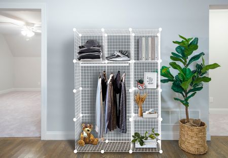 Open wire construction allows for quick access to anything in the cube shelves. Besides, it doesn't require any tool to assemble and dismantle, so it's easy to get started.Greenjet's Metal Wire Storage Cube will be a great solution to your storage problem. No worry about chaos anymore!